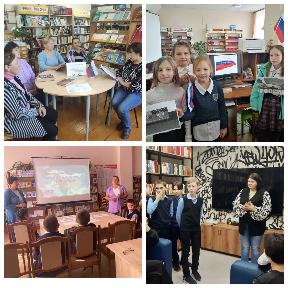 30 сентября мы отмечали новый для нашей страны праздник - День воссоединения Донецкой и Луганской Народных Республик, Запорожской и Херсонской областей с Россией. В рамках этого события в библиотеках Вурнарского муниципального округа прошли различные мероприятия.