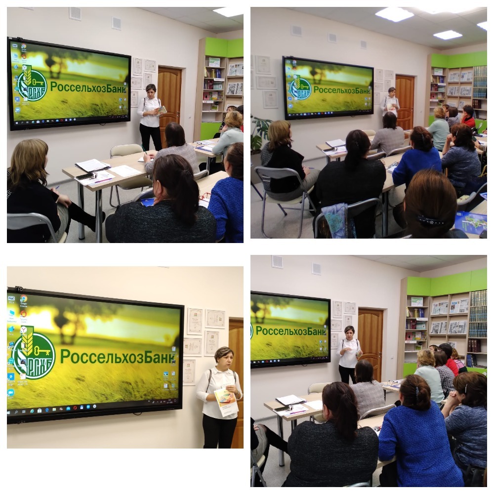 В центральной библиотеке прошёл час финансов «Кредитные продукты». Гость мероприятия - представитель АО Россельхозбанка Н.А. Кучерук. Наталия Анатольевна ознакомила присутствующих с кредитными предложениями банка на предстоящий пятилетний период: процентными ставками, правилами оформлениями, мерах поддержки клиентов, а также ипотечными программами. Исчерпывающие ответила на все вопросы участников. В заключение мероприятия были высказаны пожелания о необходимости и в дальнейшем проводить такие полезные встречи. В библиотеке оформлена тематическая книжная выставка по финансовой грамотности, на которой представлены брошюры, книги, информационный материал.