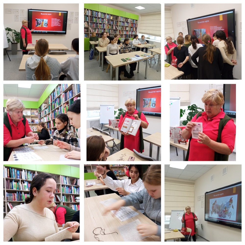Вышитая карта России по праву может считаться Всероссийским оберегом. Ведь в создании шедевра участвовало около 200 мастериц со всей страны.Идея создания такой карты родилась в Чувашии и сейчас, когда карта уже готова, хранится в Чувашском национальном музее. По мере того, как наша страна стала прирастать новыми областями, карта тоже пополняется и увеличивается.В Вурнарском районе тоже вышивалась карта. Среди мастериц была наша землячка, вышивальщица Сергеева Людмила Гурьевна - педагог ВСОШ №2.Людмила Гурьевна поделилась со школьниками, учениками СОШ деревни Абызово, историей создания карты, рассказала интересные детали. Девочки