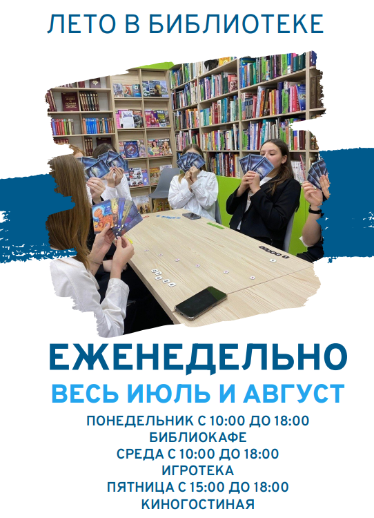 Библиокафе с 10:00 до 18:00 (каждый понедельник)