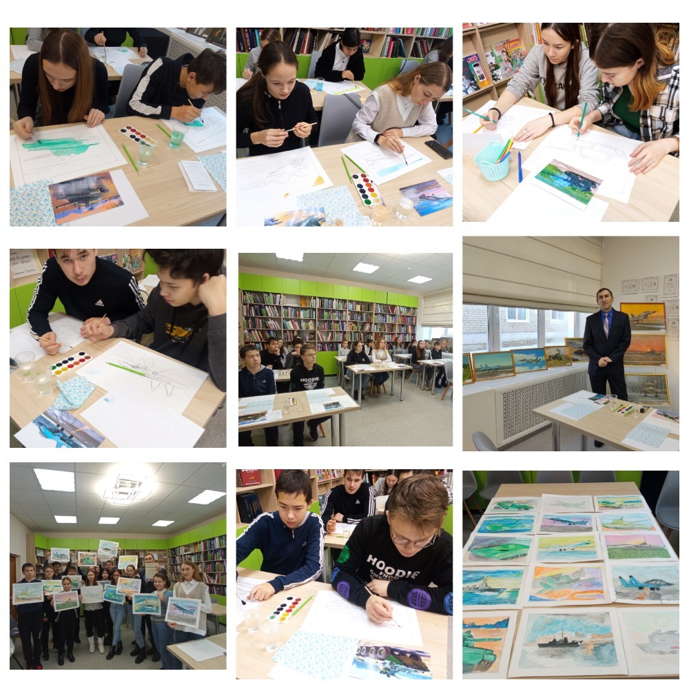 образов была различная военная техника. Увлекшись созданием собственных картин у ребят получилась целая галерея разнообразных работ, где были изображены истребители, танки, пехота, артиллерия, корабли. Все ребята и педагог, Надежда Алексеевна Ильина, остались довольны проведенным в библиотеке временем. А мастеру, Павлову Алексею Владимировичу, была вручена памятная благодарность от сотрудников библиотеки за плодотворное сотрудничество.