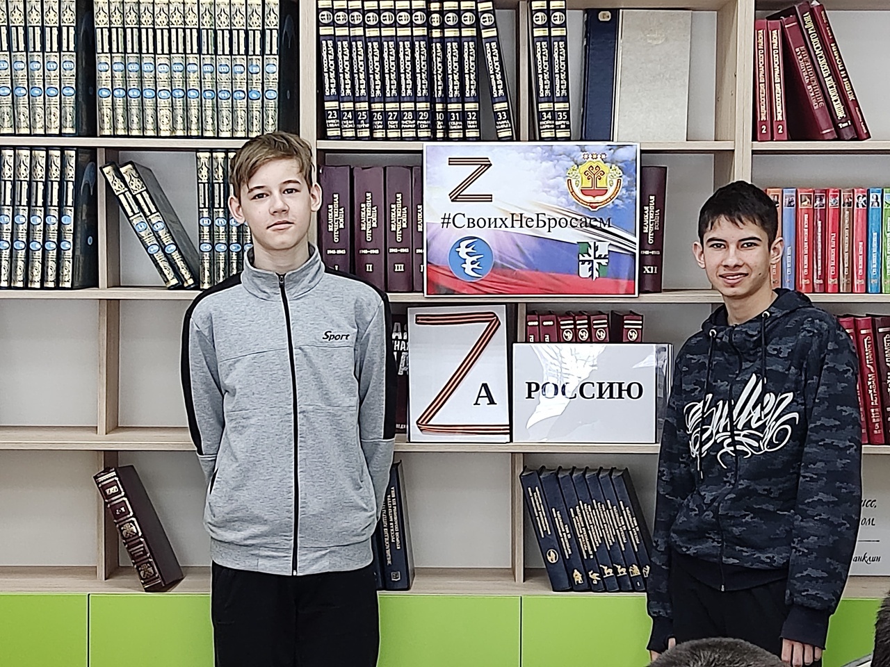 Сотрудники Вурнарской центральной библиотеки совместно с учащимися 8 класса Вурнарской школы №2 присоседилась к патриотической акции «Своих не бросаем» в поддержку наших военных, участвующих в специальной военной операции на территории Украины. Каждый участник акции мог выразить свое мнение по этой теме. Школьники, совместно с педагогами, читали стихи и пели песни о Родине. Несмотря на юный возраст, ребята понимают, что это важное и нужное дело для нашей страны.