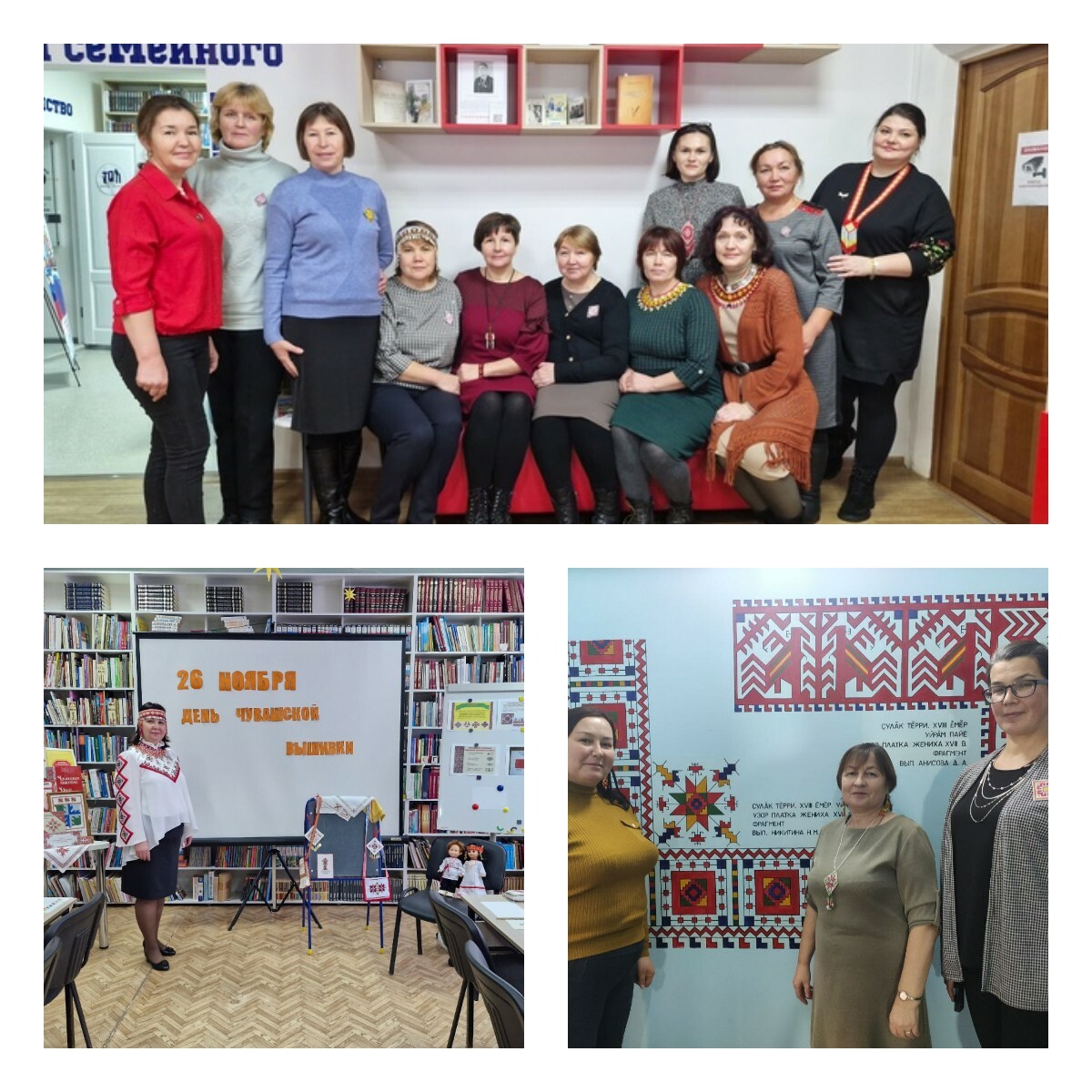 работу с вышивкой». Данная инициатива предложена Главой Чувашской Республики О.А. Николаевым. Сотрудники библиотек Вурнарского муниципального округа присоединились к данной акции и 26 ноября 2024 г. пришли на работу и приехали на учебу с элементами Чувашского орнамента.